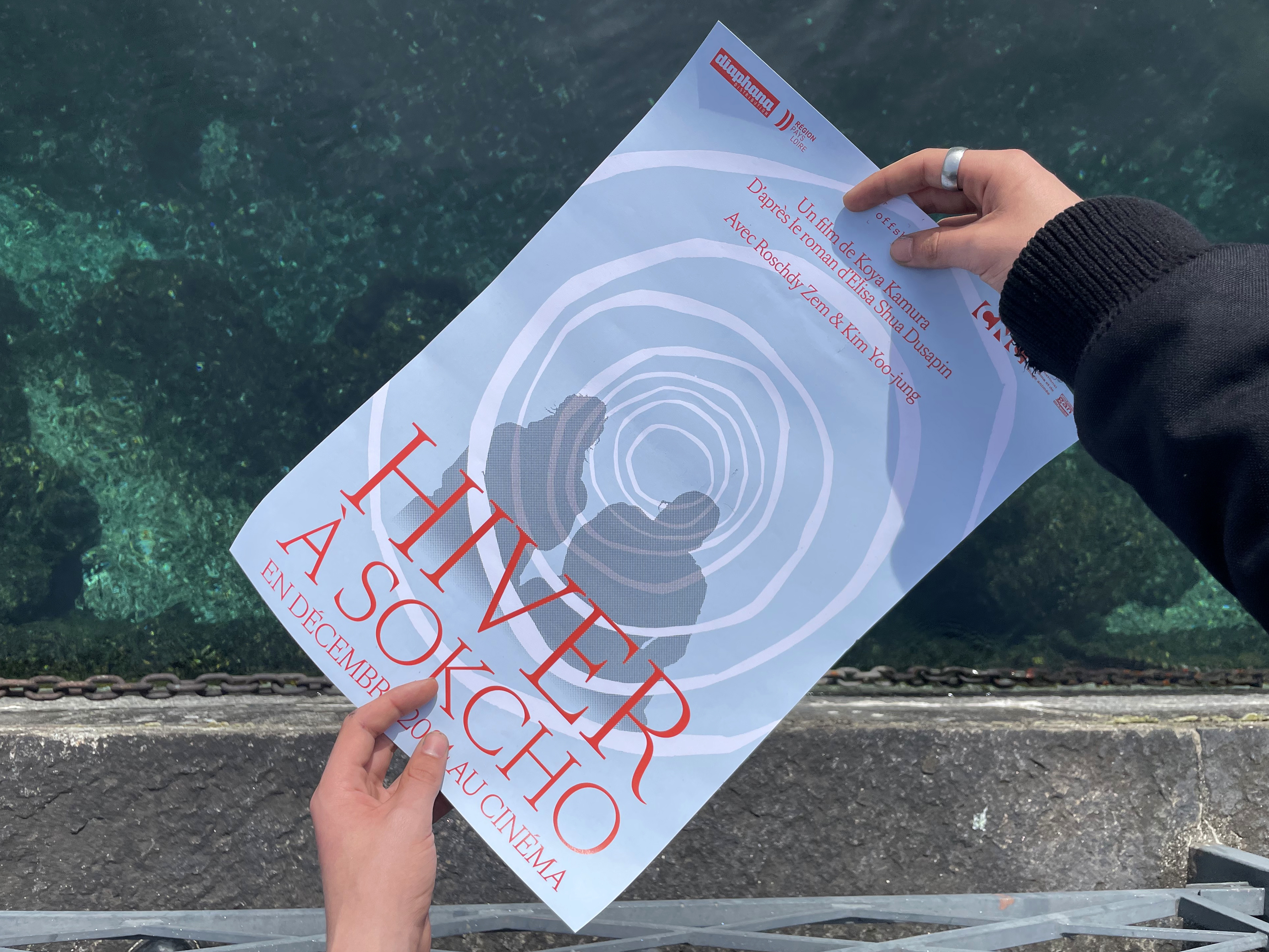 Creation of a poster for the release of the film Winter in Sokcho (fictitious project). Reflection and a week-long workshop on the identity and dual nationality of the fictional characters. Creation of an explanatory flyer about the film, the actors and the director.