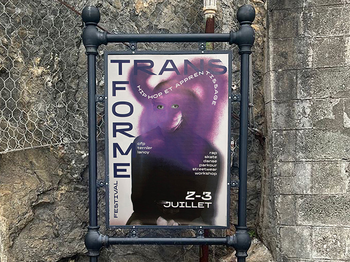 Posters for the 2021 edition of the Transforme festival highlighting hip-hop and apprenticeships.