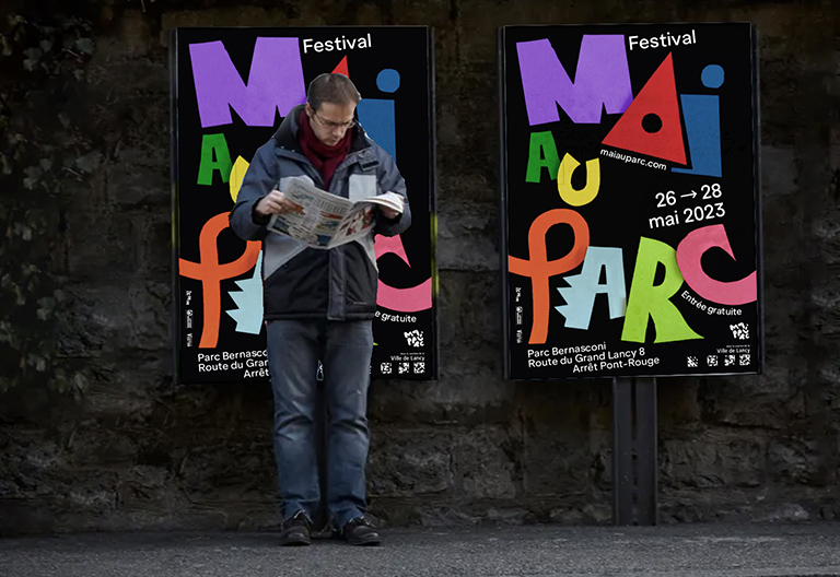 Creation of a poster for the Mai au Parc festival. An outdoor musical event that takes place in Geneva. The poster had to represent friends, family, music, joy and good mood.