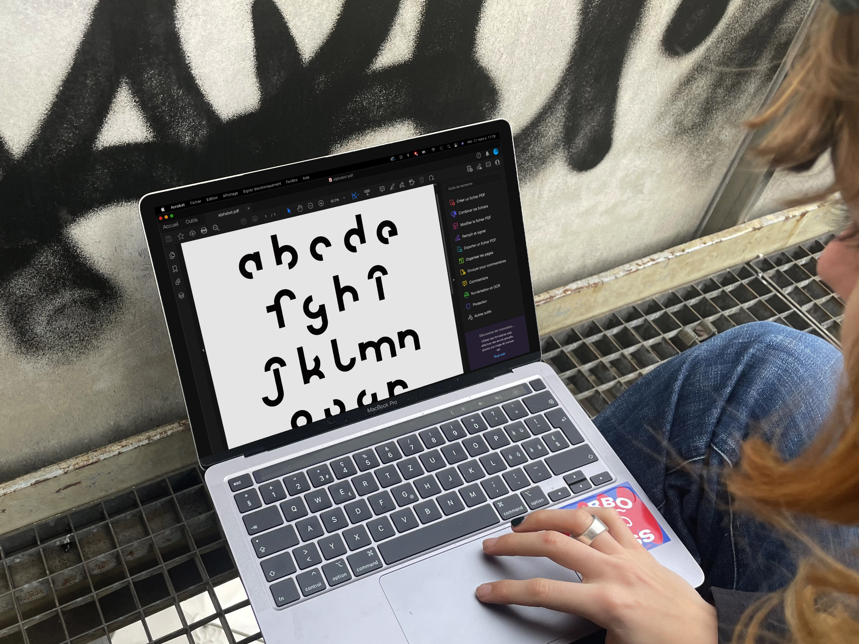 Creation of an alphabet from geometric shapes. Fictive project imagined to be later realized by cutting out shapes from potatoes.