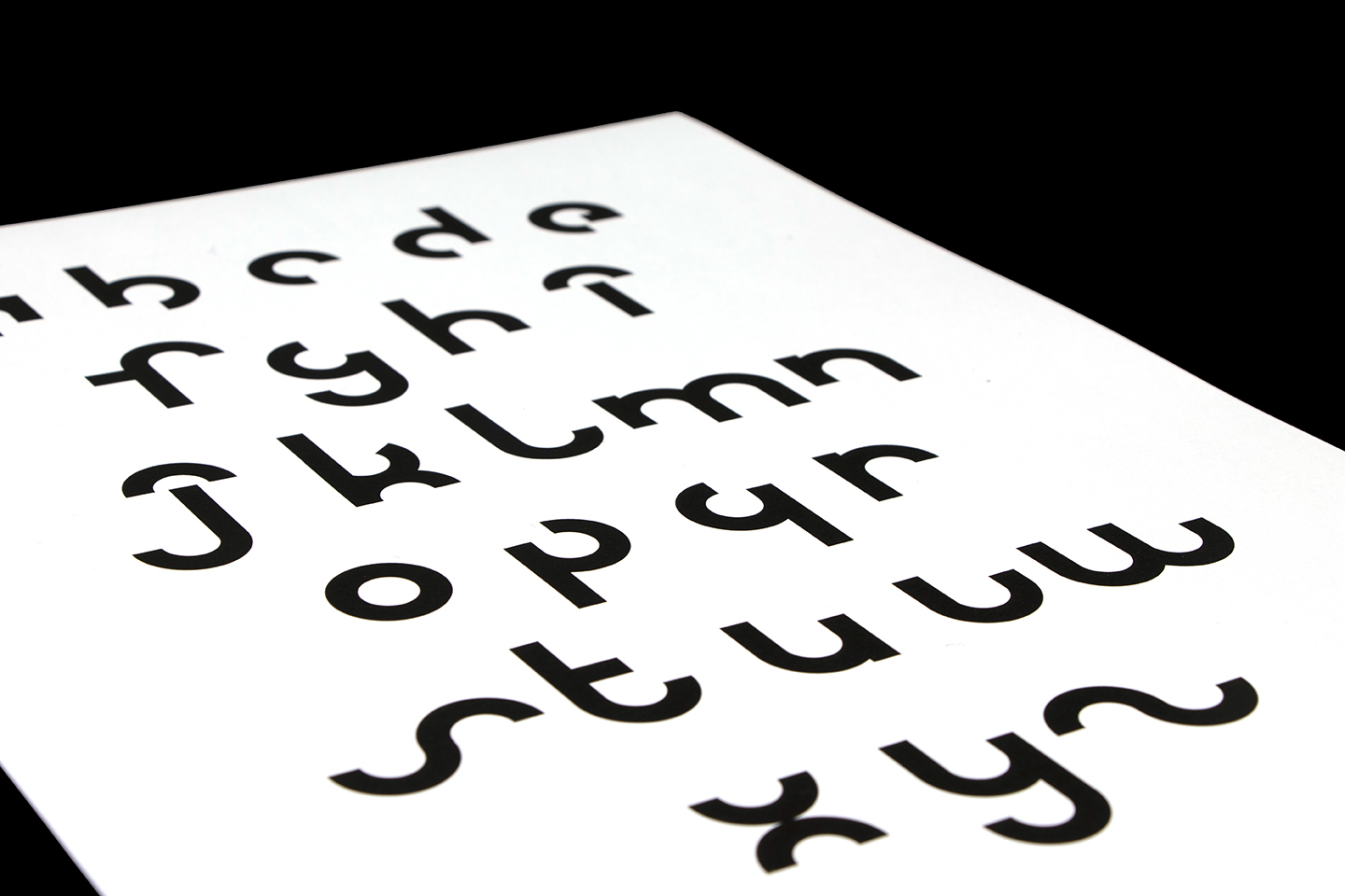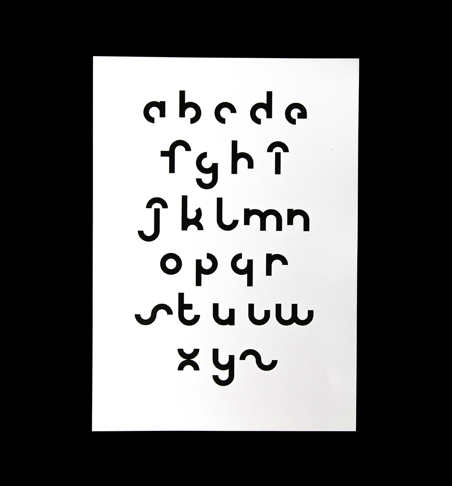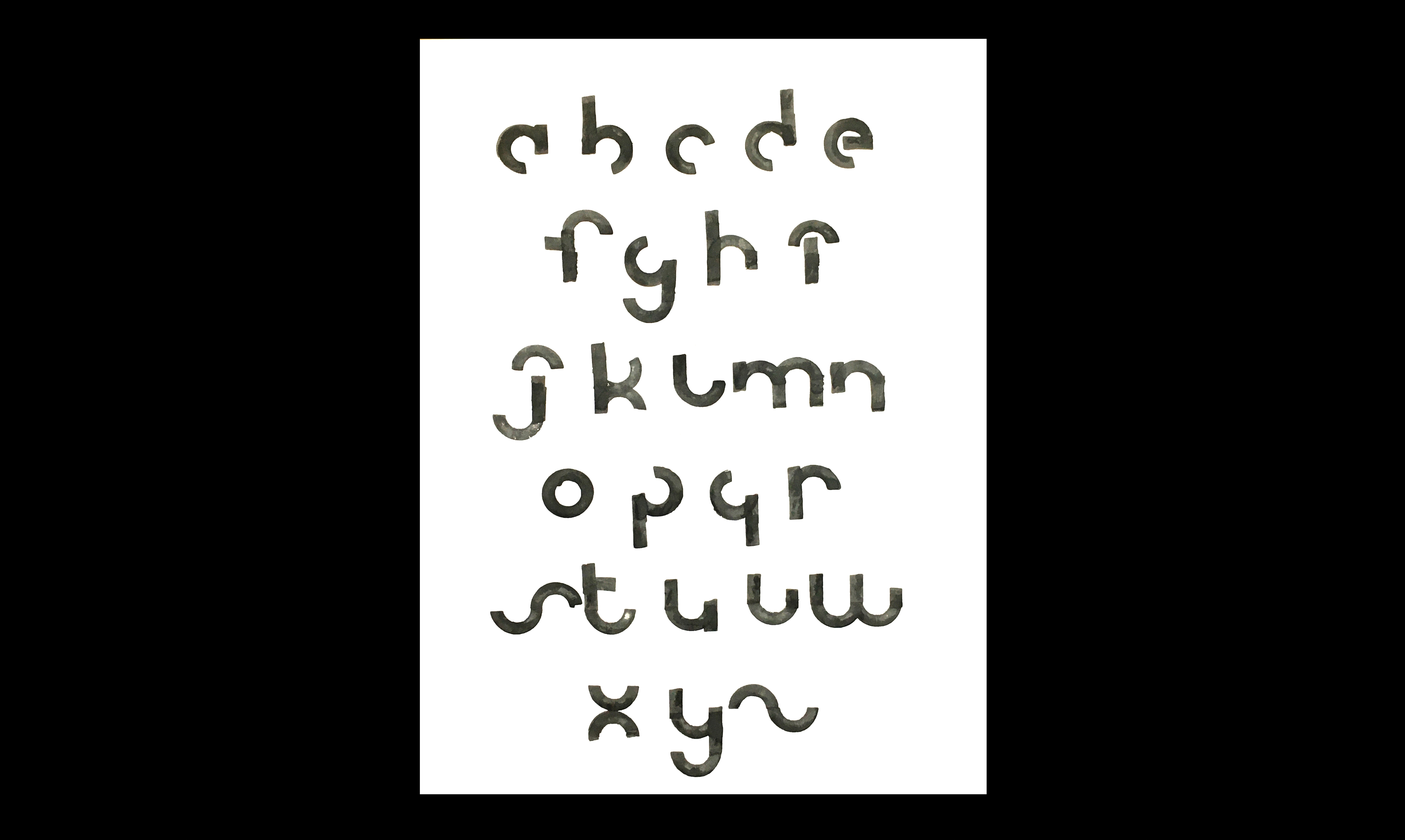 Creation of an alphabet from geometric shapes. Fictive project imagined to be later realized by cutting out shapes from potatoes.