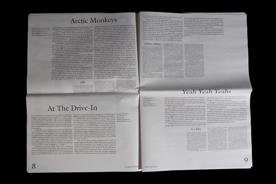 Creation of a newspaper on the theme of independent rock. Word processing and hierarchical typography with different sizes.