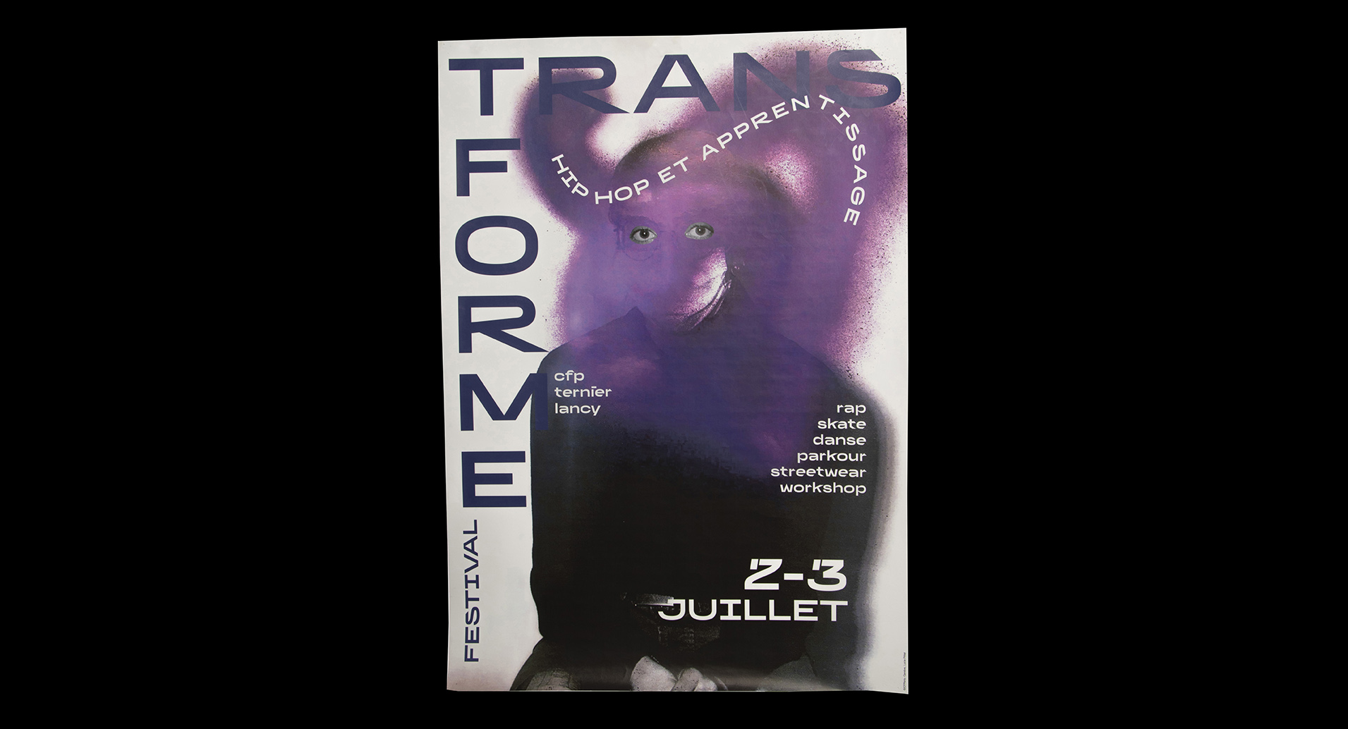 Posters for the 2021 edition of the Transforme festival highlighting hip-hop and apprenticeships.